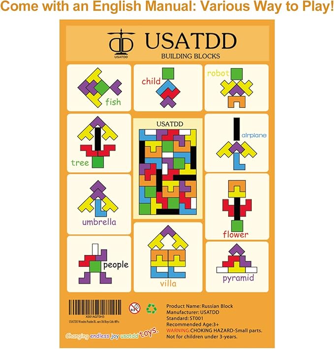 - ❤【CHALLENGING & FUN】 : USATDD Classical Tangram puzzle toys can help Training Kids imagination, improve eye-hand coordination and color & shape recognition. Get all the blocks back together on the board with different solution. Great fun for family and school, keeps the kids busy for hours.Perfect for the time when you need to calm down or relax.