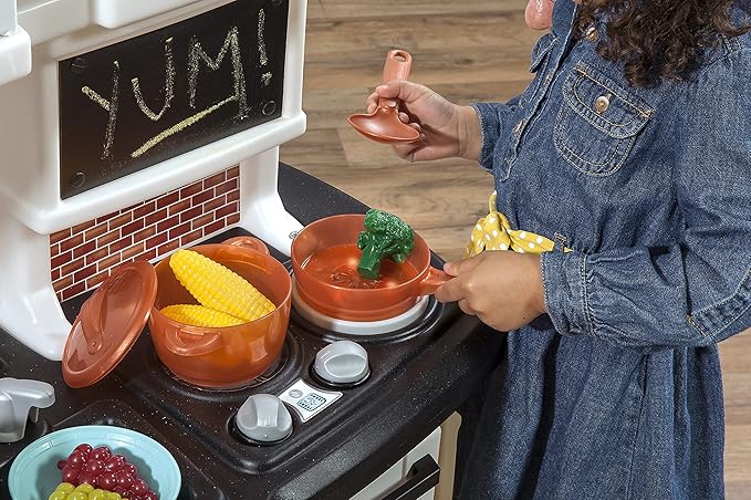 Step2 Great Gourmet Kids Kitchen Playset, Indoor/Outdoor Kitchenette, Interactive Play with Lights and Sounds, Made of Durable Plastic, Includes 33 Piece Toy Accessories, Toddlers 3+ Years Old, Tan
