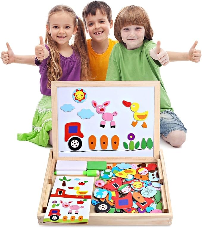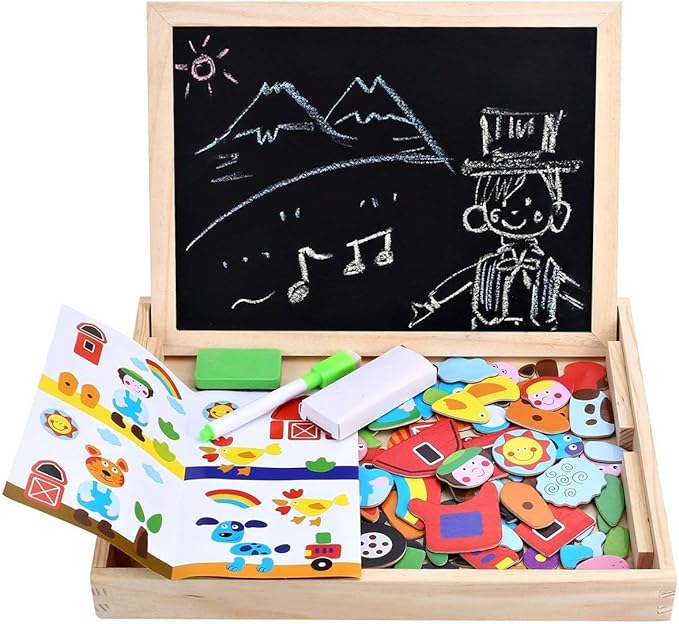 Wooden Toy Magnetic Board Puzzle Games , Double Side Jigsaw &Drawing Sketchpad Writing Dry Erase Board Chalkboard Educational Toys for Kids