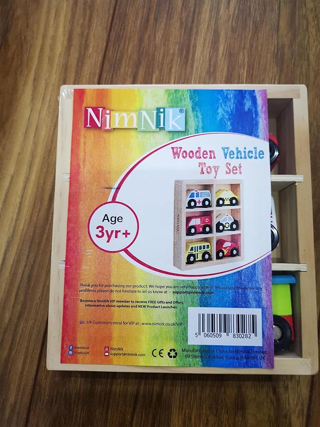 - Wooden Toy Cars For Toddlers 1-3 - The NimNik wooden vehicle set includes Train engine, Police car, London Black Cab, Red Car, Ambulance, London Double Decker Bus. The vehicle set makes a great educational toy for toddlers