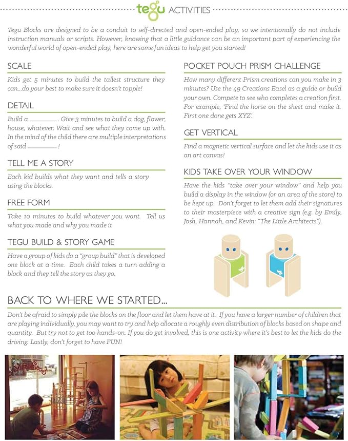 - Tegu is a building system consisting in a series of blocks and shapes appropriate for multiple age groups. It is an open-play manipulative toy with puzzle-like construction abilities