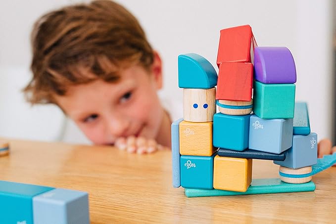 130 Piece Tegu Classroom Magnetic Wooden Block Set, Future