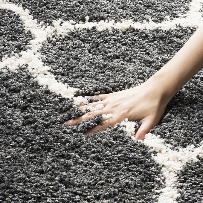 SAFAVIEH Hudson Shag Collection Accent Rug - 4' x 6', Dark Grey & Ivory, Trellis Design, Non-Shedding & Easy Care, 2-inch Thick Ideal for High Traffic Areas in Entryway, Living Room, Bedroom (SGH280G)