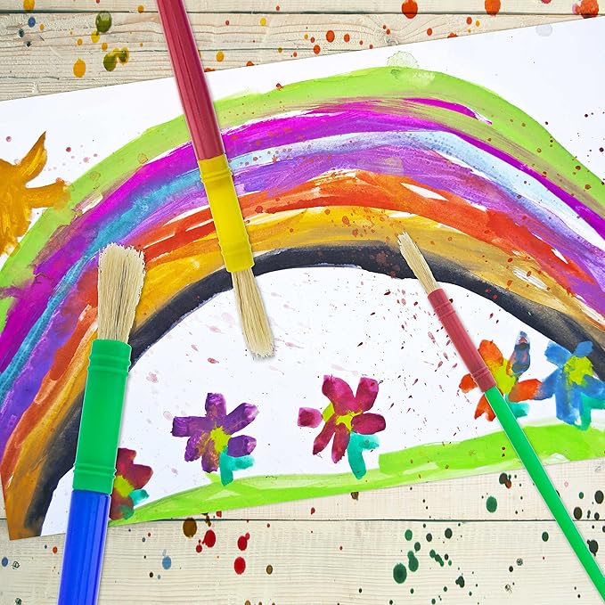 - The hog hair bristle brushes hold large amounts of paint so that the children can apply full strokes of paint color. It is the perfect colorful brush set to inspire the creative process in young minds!