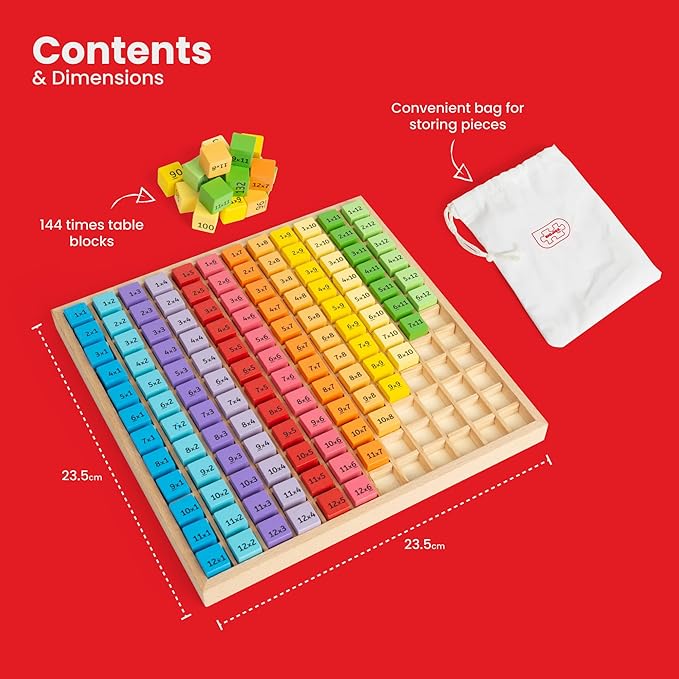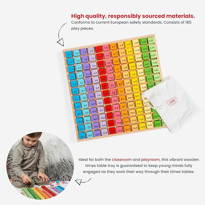 - EDUCATIONAL TOYS - This wooden board game encourages numeracy, counting, colour recognition and fine motor skills as children work out the times tables sums from 1 to 12.
