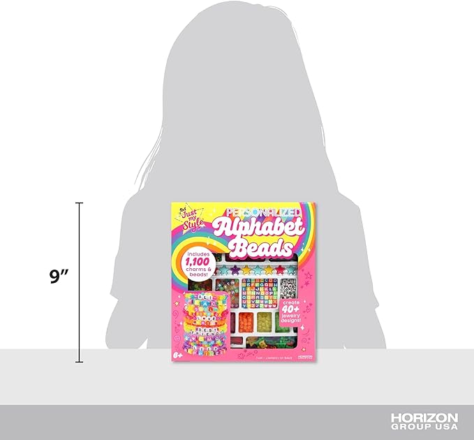 Just My Style ABC Beads by Horizon Group Usa, 1000+ Charms & Beads, Alphabet Charms, Accent Seed Star Wax Beading Cord, Satin Cord Key Ring Included, Bright, Small
