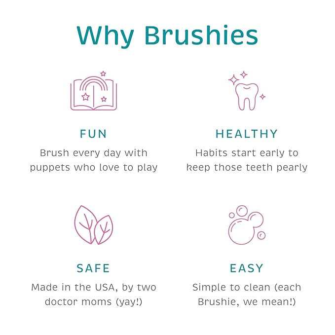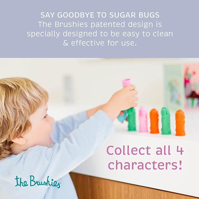 - MAKE BRUSHING FUN: For babies & small children, brushing can be difficult or dreaded. Use Brushies during playtime & tell stories about your favorite Brushie character battling the sugar bugs! By integrating creative play & storytelling at an early age, daily habits can become easy & educational!