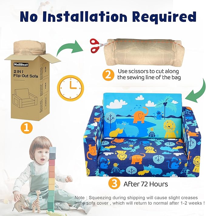- 2 IN 1 - Perfectly sized sofa bed for kids. Fold-out bottom piece 2 in 1 Flip Open Kids sofa bed, gives childrens the option of lying down flat. Give children to read, play, or folded into a reclining chair and take a nap to provide a more comfortable place.