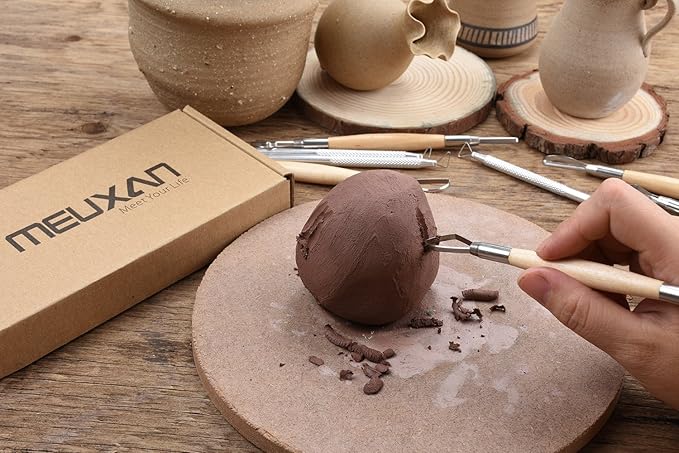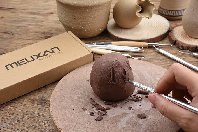 Meuxan Ceramic Pottery & Clay Ribbon Sculpting Tool Kit (Set of 12)
