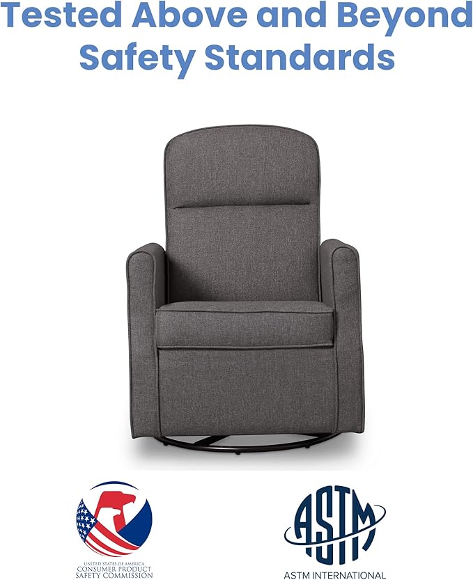Delta Children Blair Slim Nursery Glider Swivel Rocker Chair, Charcoal