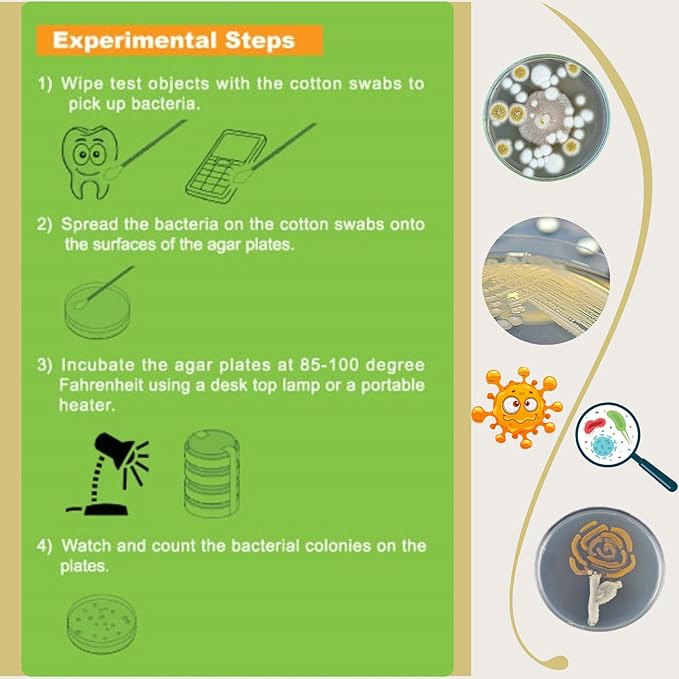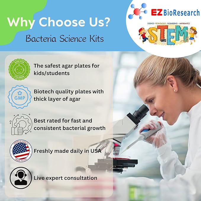 Bacteria Science Kit (IV) (Gift Pack): Prepoured LB-Agar Plates and Cotton Swabs. Exclusive Free Science Fair Project E-Book Packed with Award Winning Experiments. (IV Gift Pack)