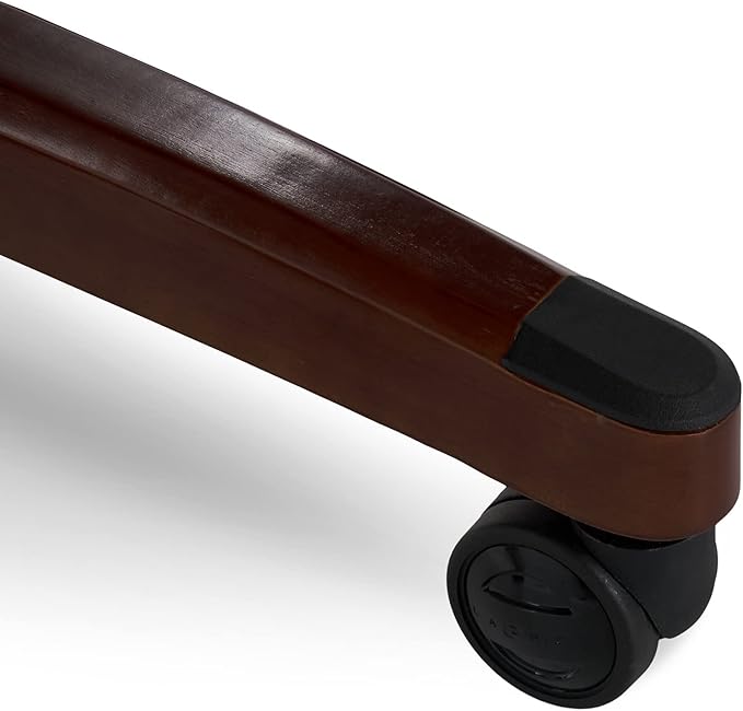 - WARM AND INVITING: Chestnut brown bonded leather upholstery with rich mahogany-stained wood