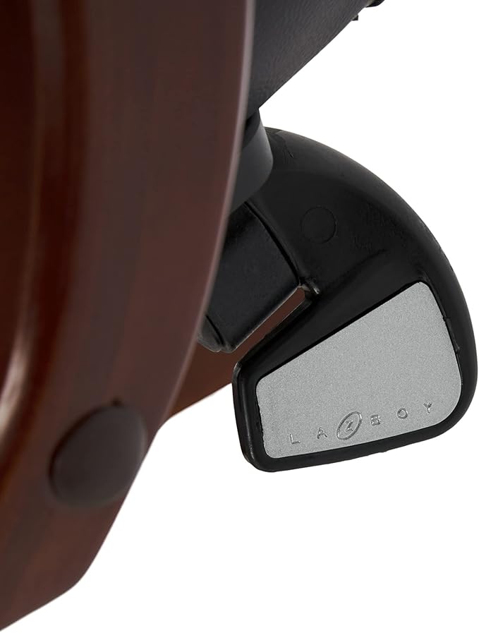 La-Z-Boy Delano Big & Tall Executive Office Chair, High Back Ergonomic Lumbar Support, Bonded Leather, Black with Mahogany Wood Finish