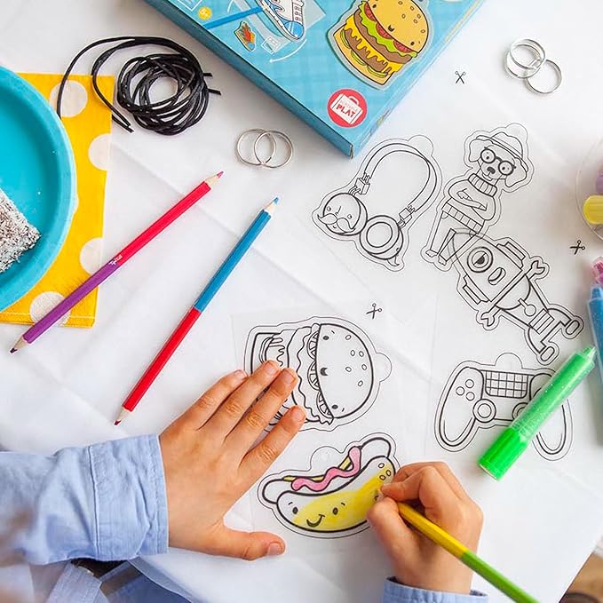 - SHRINK ART JEWELRY: Each Shrinkies set includes everything kids need to make their own shrink-art jewelry and key rings.