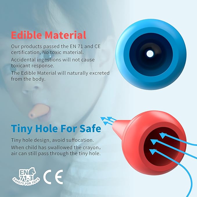 - Reassuring Crayons: Our edible crayons for toddlers are made of edible materials, no flavorings or heavy metals, and the edges of the crayons are carefully polished without sharp corners, so you can rest assured that your kids can use them