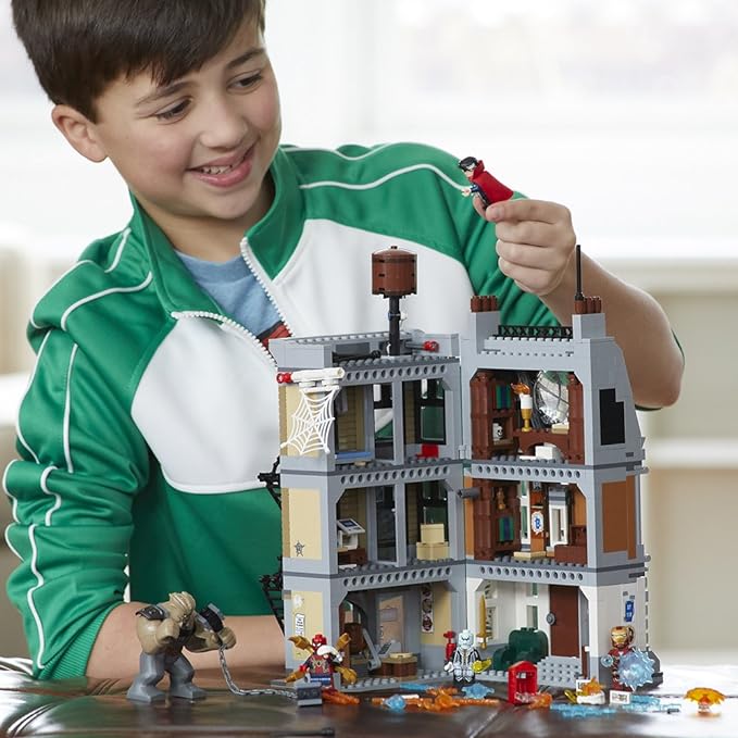 - Build a 3-level New York City building including the Sanctum Sanctorum with an Infinity Stone, pizzeria with fire extinguisher, Peter Parker’s apartment, window exploder functions and water tower