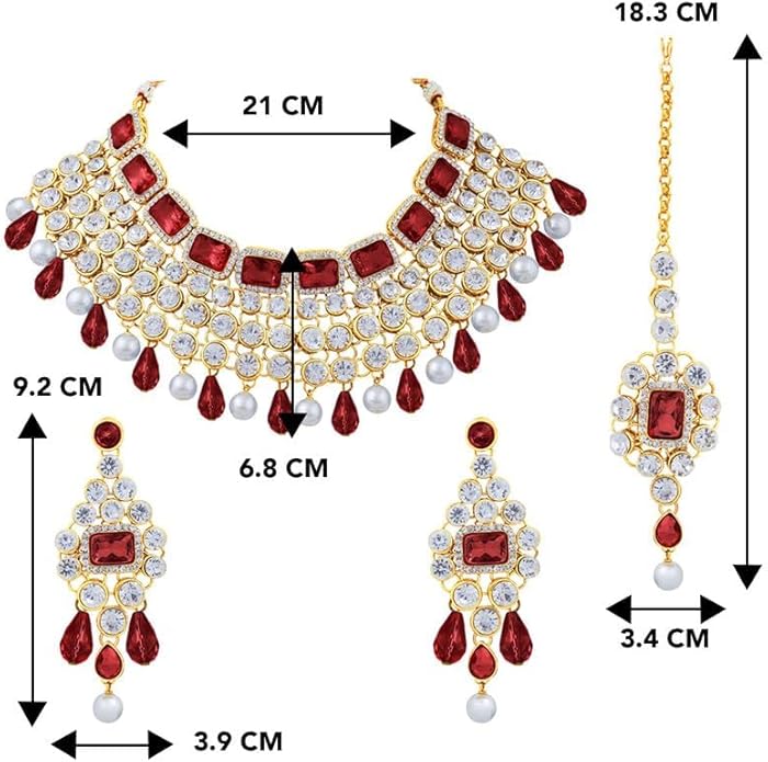 • Product Dimension :Neck piece – Length – 8 inch x Width – 2.5 inch; Earrings - Height – 3.5 inch x Width - 1.5 inch; Tikka – 7 inch