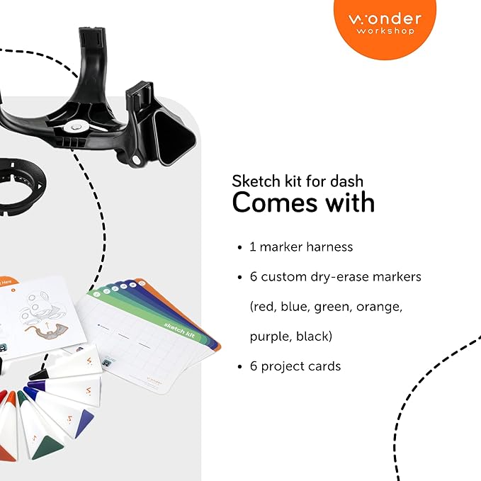 - MULTICOLOR VISUALIZATION: Our Sketch Kit is designed to work with Cue or Dash robots - perfect for kids aged 6-11. The Dash robot paired with this accessory enables kids to visualize the results of their code on a large canvas.