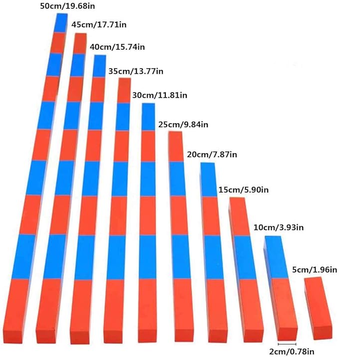 - This series of rods develops visual discrimination of length, while height and width remain constant, it can teach kids to count from 1 to 10 through the rods;