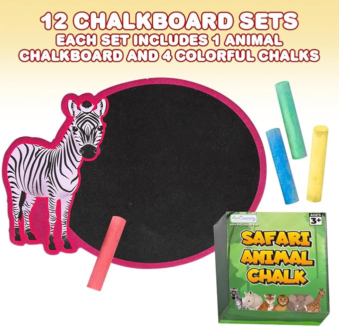 ArtCreativity Safari Animal Chalkboard Sets - Pack of 12-1 Colorful Animal Chalk Board + 4 Colorful Chalks - Small Chalkboards - Assorted Colors - Great Party Favor - Amazing Gift Idea for Kids