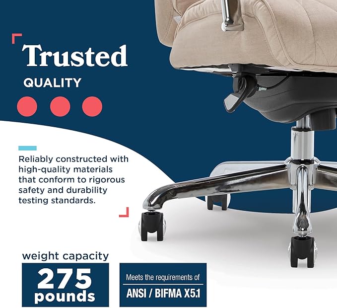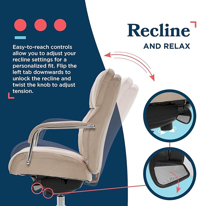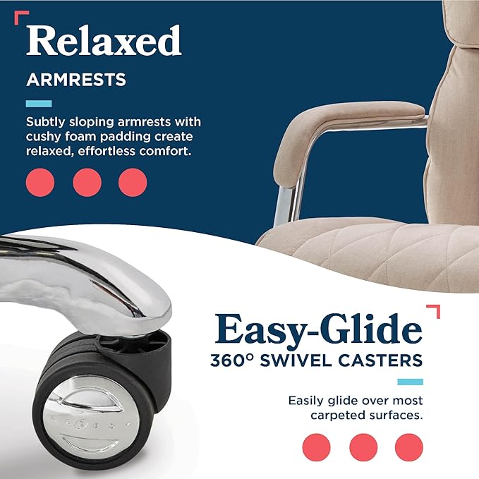 La-Z-Boy Sutherland Quilted Leather Executive Office Chair with Padded Arms, High Back Ergonomic Desk Chair with Lumbar Support, Cream Microfiber Fabric