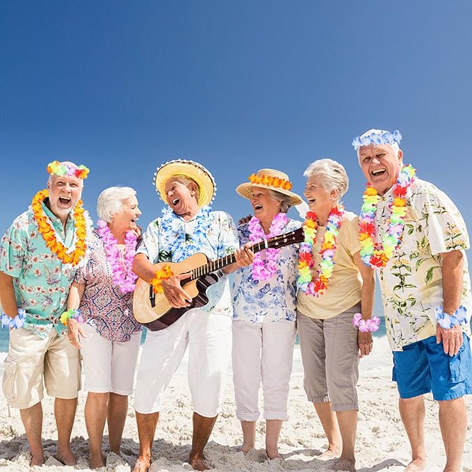 - Perfect for Party: Luau leis is a perfect decoration for various theme parties-birthday party, beach party, pool party and wedding party. The tropical party decoration set allows you to throw any theme party.