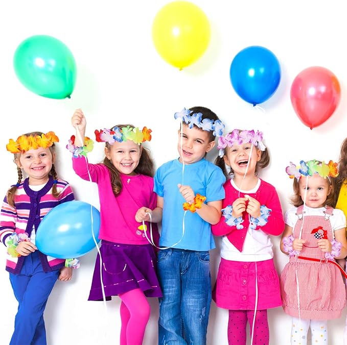 - Thoughtful Design Concept: Smart spacers keep floral leis full and frill that makes it comfortable and easy for kids, man and women to wear. Hawaiian Leis necklaces combines with elastic headband and wristband, making your costume more appealing.