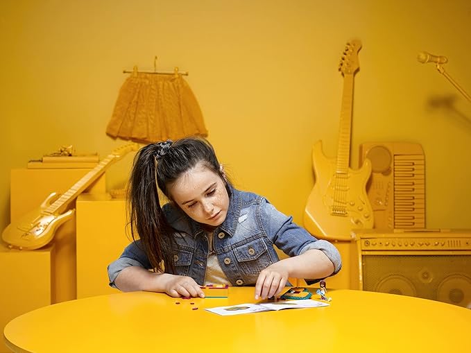 - This collectable toy includes Andrea from LEGO Friends as a minidoll, a microphone, a speaker, headphones, a guitar, sunglasses and ice cream. This guarantees hours of role play fun