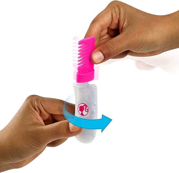 - Use the comb and sparkle gel to add shimmer to Barbie doll's hair -simply attach the gel tube to the comb and squeeze while combing to apply with ease!
