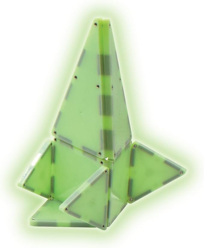 - What Makes It Unique: Features magnetic construction pieces that glow in the dark. Works with direct sunlight or supercharge pieces with the included LED light key chain. Reusable packaging includes space-themed stencils for fun activities at home.