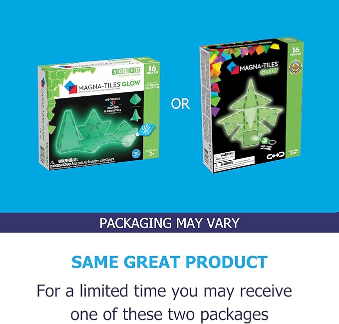 MAGNA-TILES Glow 16-Piece Magnetic Construction Set, The ORIGINAL Magnetic Building Brand