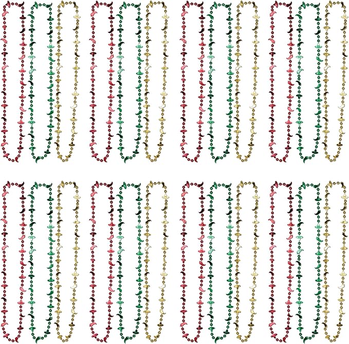 Beistle S57262AZ4 Plastic Fiesta Beaded Necklaces 24 Piece Mexican Party Supplies Chili Pepper Sombrero Favors, 33", Red/Green/Yellow