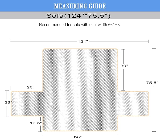 - SUITBLE FOR VARIOUS SOFA TYPES - Seat Width: (XL Sofa) up to 78", (Sofa) up to 68", (Loveseat Oversized) up to 54", (Loveseat) up to 46", (Recliner Oversized) up to 30", (Recliner) up to 23", (Chair) up to 23". See MEASURING GUIDE in photos. SEARCH FOR MORE SIZES IN OUR SHOP.