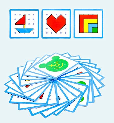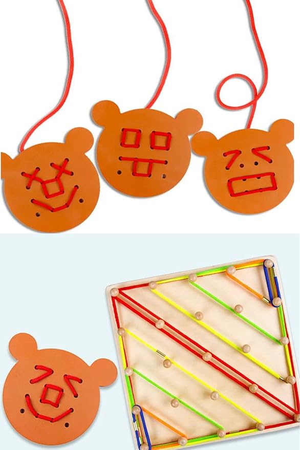 YHZAN Wooden Geoboard Graphing Peg Board Montessori Toddler Sensory Toy Colorful Rubber Bands Pattern Cards Preschool Learning Game
