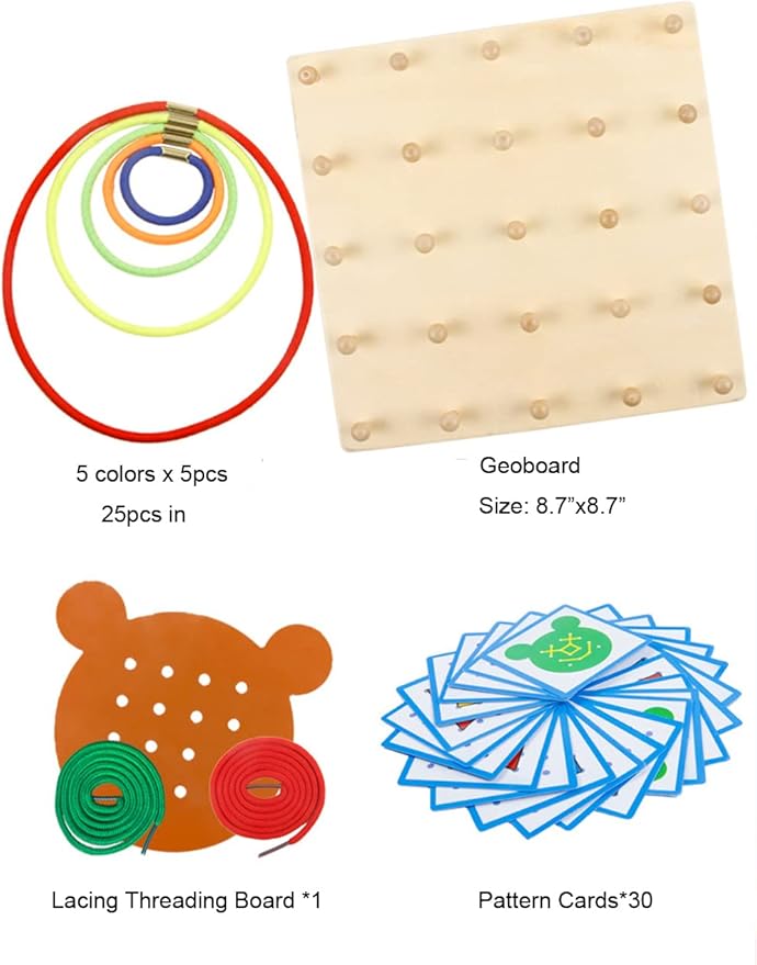 - This geoboard is 5 x 5 grid,with 30pcs pattern cards