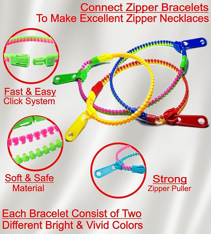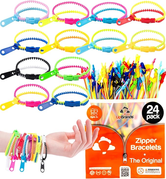 - UpBrands Fidget Zipper Bracelets Pack is selling in bulk, so they have an excellent unit price compared to similar toys sold in vending machines at rates of 1 dollar or more. Many people buy one order and enjoy the toys all year long for holidays, birthdays, and just for fun. Boys and Girls will just love these plastic bracelets. Key Product Features