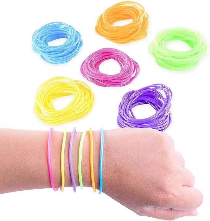 - Made out of a squishy and stretchy plastic material, these jelly bracelets are fun and safe for anyone of all ages, both boys and girls! Wear one to simply capture the spirit of the retro 80s era, or cast a whole arm full of them! The possibilities are endless for a fun birthday party or event celebration for both children and adults.