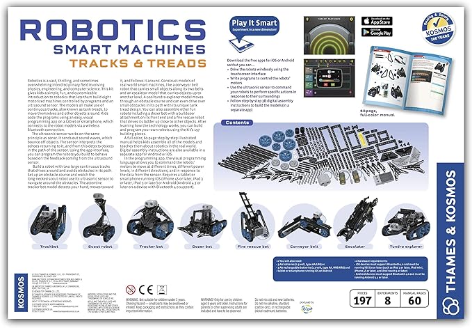 Thames & Kosmos | Robotics Smart Machines: Tracks & Treads | for Kids 8+ | STEM Kit Builds 8 Robots | Color Manual to Help with Assembly | Requires Tablet or Smartphone | Parents' Choice Silver Award