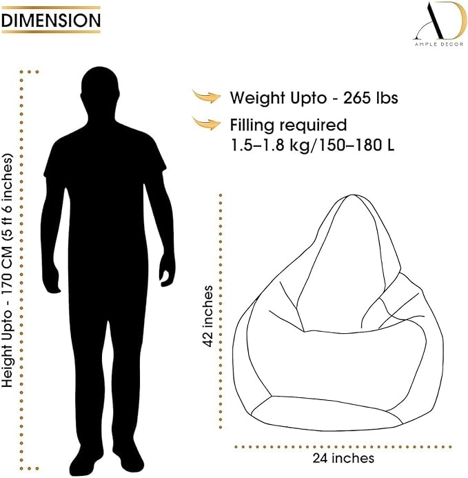 - BEAN COVER ONLY: This package only contains the bean bag cover; it does not come with any bean filling. The bean filling needs to be bought separately. The amount of use determines how often the bean bags need to be refilled. In this size, 1.5–2 kg/150–200 L can be filled.