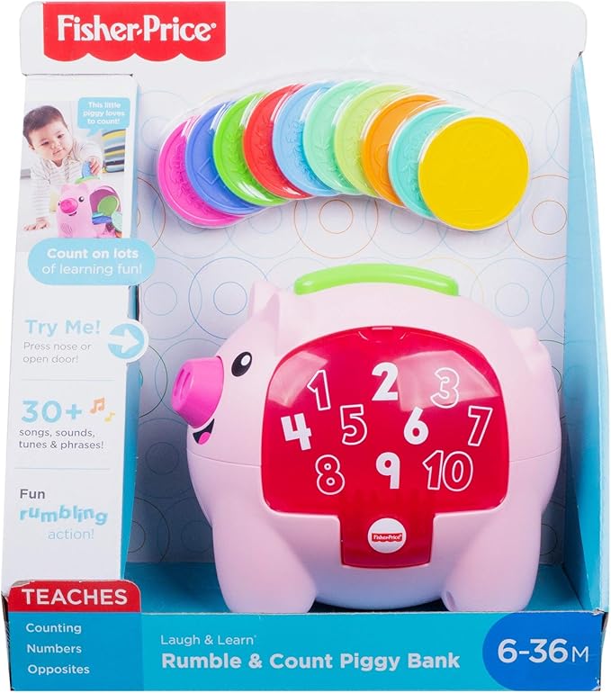 Fisher-Price Baby Musical Toy Laugh & Learn Count & Rumble Piggy Bank with Songs & Motion for Infants & Toddlers Ages 6+ Months