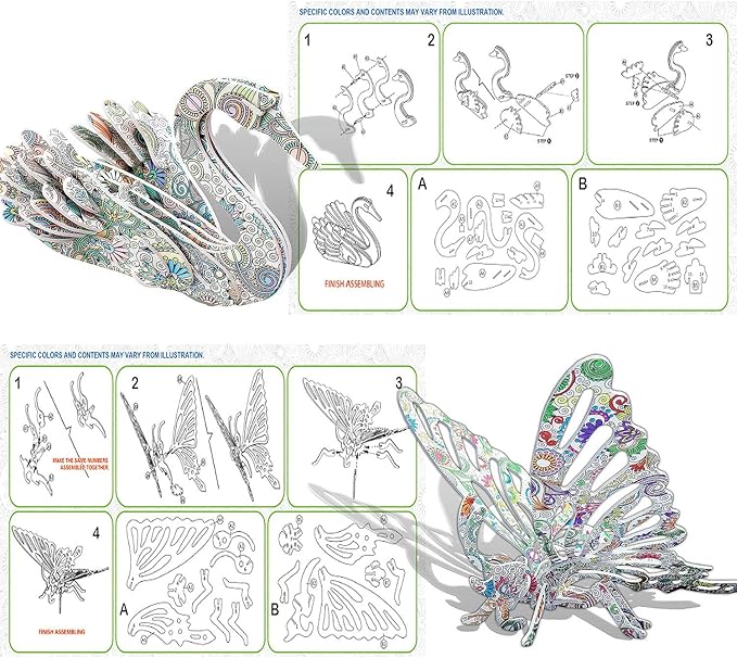 - 3D Puzzles UZZLES LARGER SET ARCHITECTURE MODELS, This 3D Art Coloring Puzzle Set includes a total of 4 Designs along with 12 Coloring Markers. You get to Assemble and Color 4 Animals including a Butterfly, Horse ,Elephant and Goose. This is more than enough to keep you Engaged for Multiple Hours