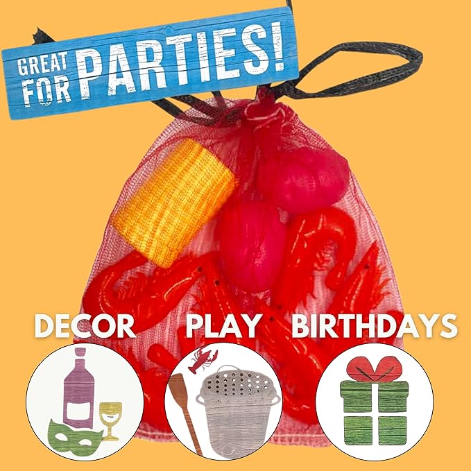 • This play seafood is great for parties, playing at home, or your next shrimp boil. The children in your life can play like a Cajun with this fun toy bag of fixins!