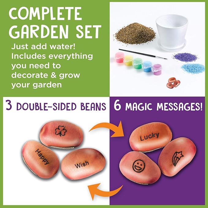 - KIDS GARDEN: Transform your gardening experience with the Creativity for Kids Magic Bean Garden Kit! Create your own enchanting world by painting and decorating a pot to grow a magical bean garden. Watch as your garden grows to reveal surprise messages on the magic bean pods