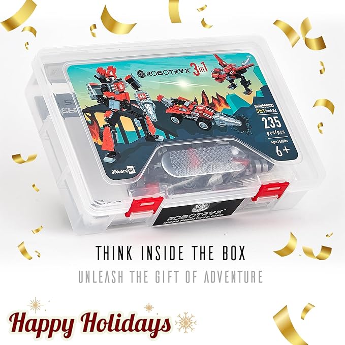 - 【The only building bricks set with a storage box】Each of our designed in USA Robotryx kits comes in a colorful storage box in which all the pieces can be stored after play. This means no more mess to give parents a easy break. It also means on-the-go fun with ready portability that can be taken wherever kids go so they can stage outer space battle scenes.