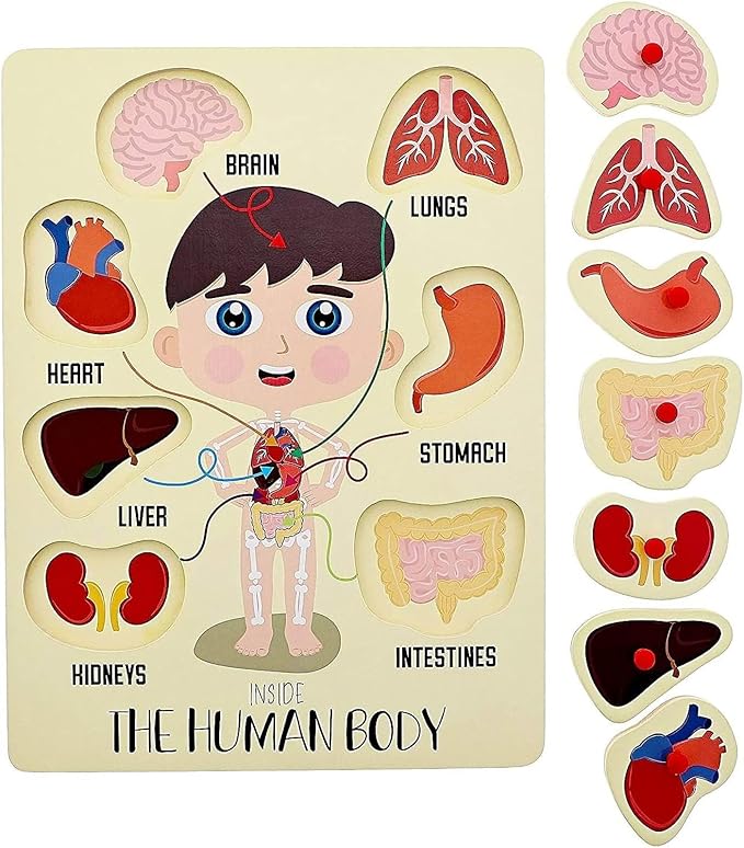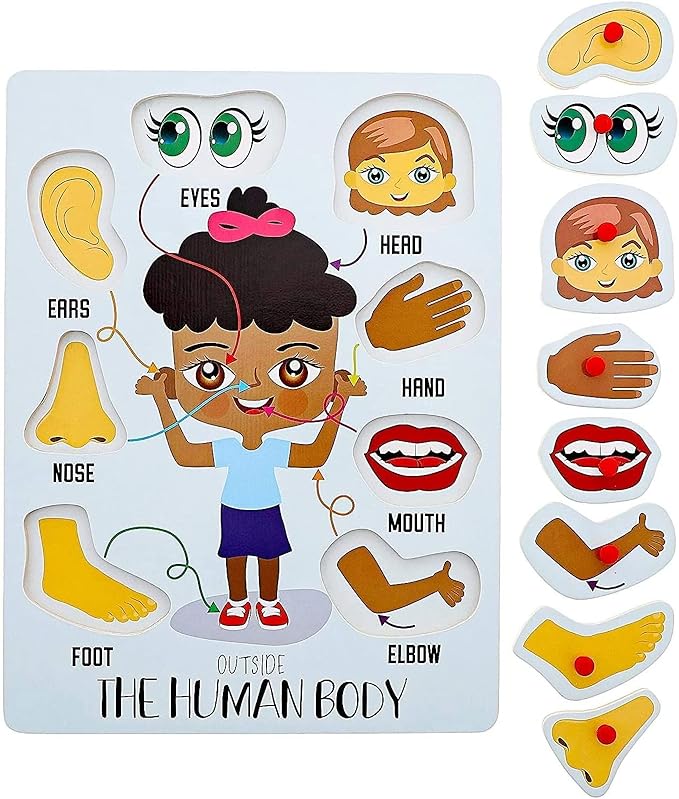 - Wooden Peg Puzzle: This set of anatomy puzzles will help children learn about the different parts of a human body