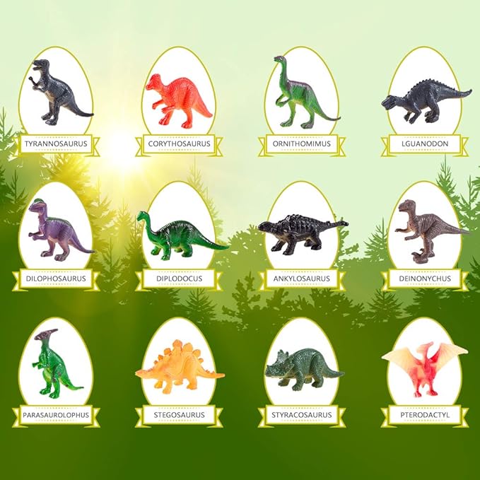 - π¦ XXtoys Dino Egg Dig Kits: Our dig kits come with 12 eggs individually wrapped, each with it own chisels and brushes. Use the tool to dig into the eggs to get the unique dinosaur toys out. And there are 12 full color dinosaur learning cards with information on each dinosaur and a picture reference sheet to match toy to the name cards. Find a T-rex, Dilophosaurus, Ankylosaurus and much more! Really helpful for the kids to learn it.