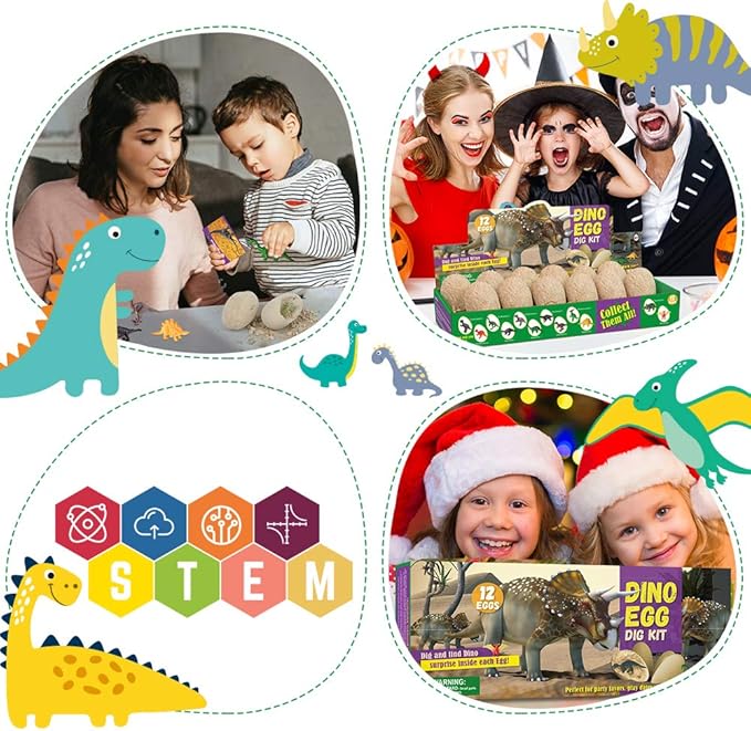 XXTOYS ππ’π§π¨ ππ π ππ’π ππ’π, Dig a Dozen Dinosaur Eggs Excavation Kits with 12 Unique Dinosaur Toys, Dinosaur Dig for Kids, Easter Party Archaeology Paleontology Educational Science STEM Gift
