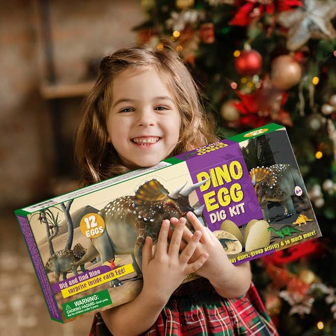 - π¦ Individual Or Group Play: If your kid enjoys dinosaurs and you want to keep him busy, then look no further, get this archeology kits for your kids. And there are 12 dino dig eggs, enough picks for multiple kids to dig it up which will be a quick relief for the parents! Those dinosaurs egg come with a well made box and made of harmless plaster, great birthday, Christmas gift for kids. And dinosaur digging fossil is also a great education toys on the class.