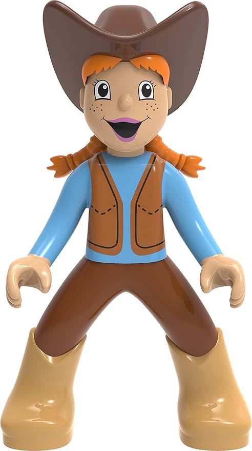 • Build & Play: recreate a charming railroad scene with buildable track pieces, a train engine and car, plus fun play figures - a train engineer, a cowgirl, and a horse!