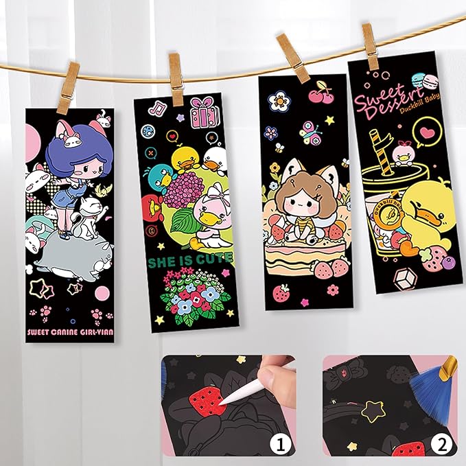 - 🌈 Bright colors: Bright and colorful colors make children feel happy when scratching, and the glittering patterns add a dazzling visual experience!